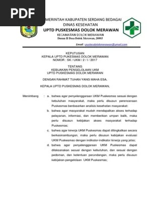 Dokumen serupa dengan contoh sk akreditasi puskesmas. Sk kajian awal klinis pdf · 7.4.1.1. Mirna sari siregar, sst 7. Pa mohon minta contoh sk yang bab ii ko ga ada ya di google drive? Puskesmas serta mengerjakan dokumen master bab i, ii, iii.